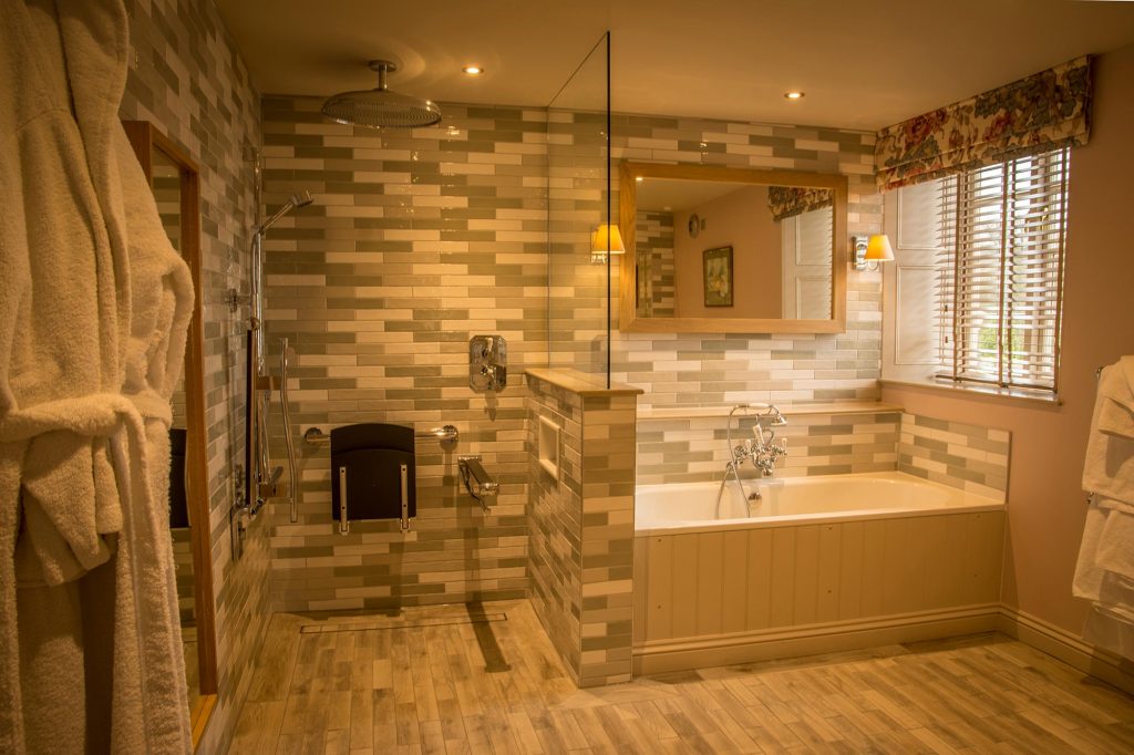 Bathrooms are traditional and well-appointed with classic fittings, luxury showers and underfloor heating. Walls are a mélange of beautiful porcelain, timber paneling and wallpaper. Large recessed and illuminated mirrors all have demister pads.